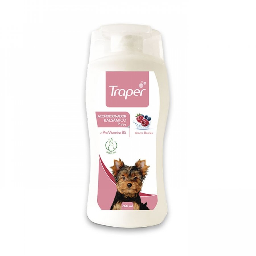Traper® Acondicionador Balsámico para cachorros, cuida y protege la piel de tu peludo. Formulado con Pro vitamina B5 que nutre, suaviza e hidrata la fibra capilar, facilitando el peinado y desenredo de nudos. Hidratación especial para tu perro con suave y delicado aroma. Traper® lleva más de 10 años desarrollando productos para perros y gatos. Línea de higiene, cuidado y belleza para mascotas. Las ventajas de este producto son: Hipoalergénico: Ideal para peludos con problemas de alergías cutaneas. Sin colorantes ni parabenos: Ayuda a cuidar y proteger la piel de tu peludo. Libre de crueldad animal: Si eres amante de los animales, esta es una razón de sobra para preferir los productos Traper.