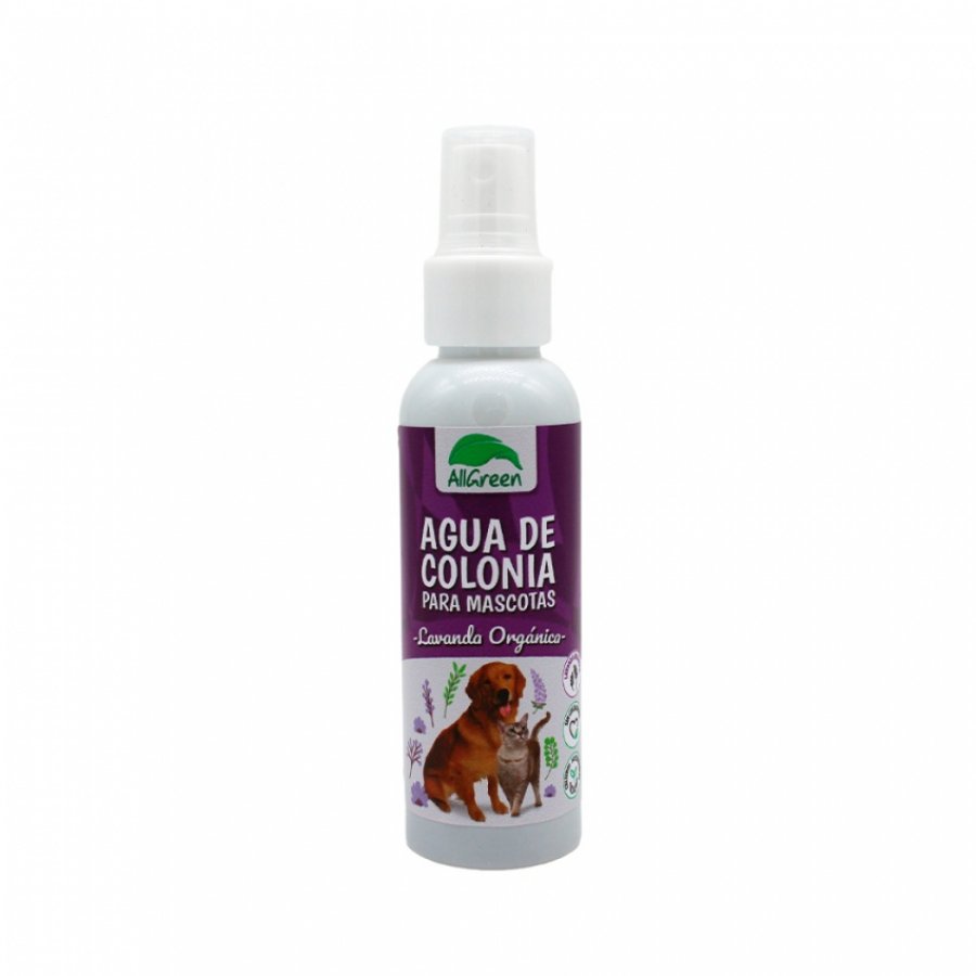 Agua de Colonia de Lavanda AllGreen es elaborada con alcohol de mai?z, que protege la piel de las mascotas de irritaciones, y esencia de lavanda orga?nica que armoniza, calma y aromatiza de forma natural. Los componentes curativos de esta planta actu?an como relajante en el sistema nervioso central, disminuyendo el estre?s y la ansiedad en mascotas. Adema?s es antivi?rica y antibacteriana, por lo que ayuda a perpetuar la limpieza del ban?o. AllGreen cuenta con certificacio?n de cultivo 100% orga?nico otorgada por la Universidad Cato?lica de Chile y la certificadora alemana BCS. Las características de este producto son: Protege la piel de las irritaciones. Actu?a como relajante en el sistema nervioso central. Antivi?rica y antibacteriana. No usar en cachorros menores a dos meses de edad. Modo de uso: Rociar directo sobre el lomo y esparcir suavemente. El aroma y esencia de la lavanda acompan?ara? a tu mascota durante el di?a. Si se aplica adema?s durante la noche, le ayudara? a tener un mejor descanso. Contenido: 100ml.
