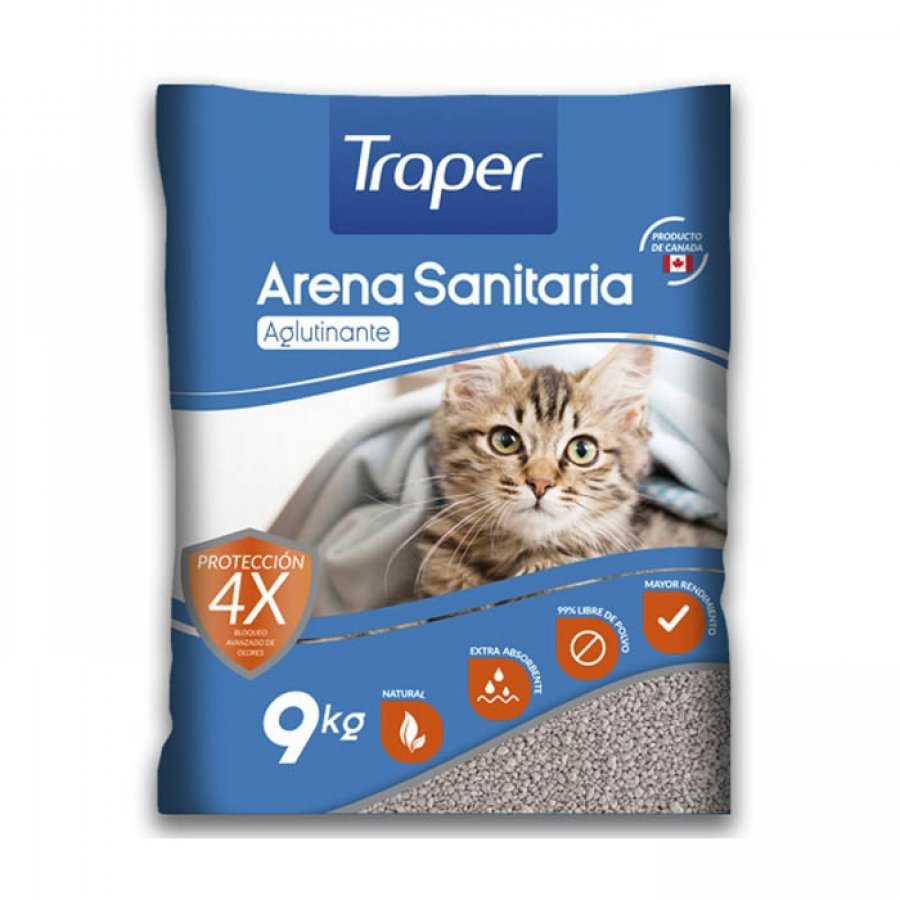 Traper® Arena Santiaria es un producto natural de calirad superior que entrega la higiene y confort que tú y tu gato merecen. Sus finos gránulos brindan una sensación natural y 99% llibre de polvo. Máxima fuerza y rapidez aglomerante, forma bolos compactos y fácilmente removibles, que dejan el resto de la arena limpia y libre de mal olor, mejorando el rendimiento. Traper® lleva más de 10 años desarrollando productos para perros y gatos. Línea de higiene, cuidado y belleza para mascotas. Las ventajas de este producto son: Con sistema de protección 4X: Protege contra el olor a amoniaco, fecas y orina con máximo poder absorbente (hasta 3 veces su peso en agua). Fórmula multi gatos: Ideal para hogares con más de 1 gato.