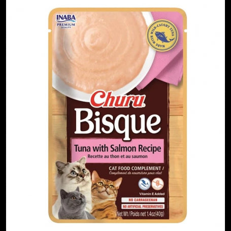 Churu bisque es un puré rico y cremoso como nuestros Churu, con una consistencia más espesa que es perfecta para servir como acompañamiento. Todo elaborado con ingredientes de grado humano y suplementados con vitamina E y antioxidantes.