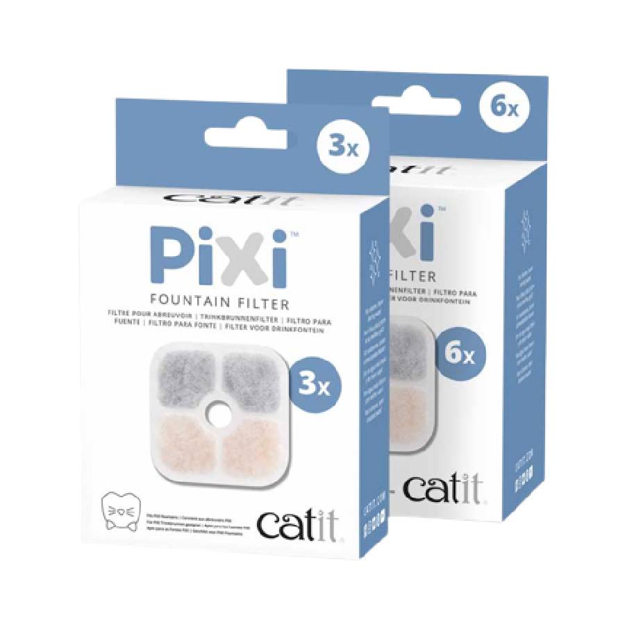 El Filtro para Fuente Catit PIXI purifica continuamente el agua potable de tu gato en no menos de 3 formas. El Filtro para Fuente Catit PIXI limpiará el agua potable de tu gato de 3 formas. Filtrará los desechos, eliminará los olores y las impurezas e incluso suavizará el agua al reducir los niveles de magnesio y calcio. Cuando están presentes en grandes cantidades, estos minerales pueden acumularse en el tracto urinario inferior de tu gato y provocar enfermedades del tracto urinario. Las cracterísticas de este producto son: Filtra los restos y residuos Elimina olores e impurezas Suaviza el agua del grifo Apta para todas las Fuentes para Gatos Catit PIXI Cantidad: 3 unidades o 6 unidades Recomendación: El filtro para fuente Catit PIXI se debe reemplazar cada 30 días para obtener resultados óptimos.