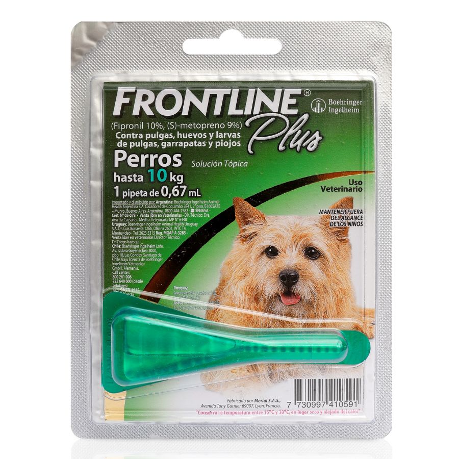 Cortar la pipeta a nivel de la parte superior marcada, vaciar el contenido de la misma directamente sobre la piel, separando el pelo del animal entre los hombros para evitar el lamido. Procurar no empapar el pelo con exceso, lo que podría darle un aspecto pegajoso en el foco de la aplicación. En caso de que ocurriera, el efecto desaparecerá a las 24 horas. FRONTLINE Plus puede utilizarse en hembras en gestación y en lactación, y en cachorros desde las 8 semanas de edad. El producto tarda 24 horas en extenderse por el pelo del animal. No se recomienda bañar al animal durante las 48 horas anteriores o posteriores a la aplicación de FRONTLINE Plus. Las garrapatas mueren durante las primeras 24-48 horas posteriores a su adhesión