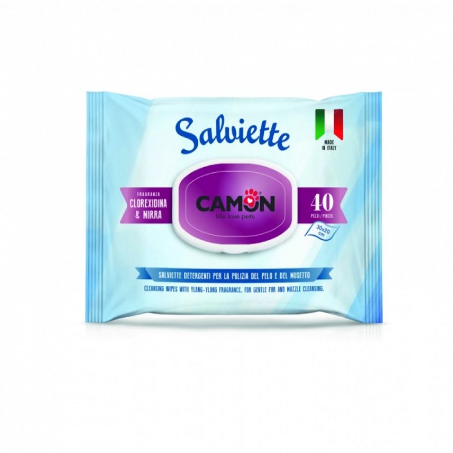Camon está especializada en ofrecer una amplia gama de productos y soluciones para el bienestar de sus mascotas. Nuestro principal esfuerzo es ayudar y cuidar a los amantes de las mascotas, alcanzando resultados sobresalientes. MYRRH AND CHLORHEXIDINE WIPES Cubre las toallitas de limpieza con aroma de mirra. Muy prácticas para su mascota: manténgalas siempre a mano en casa o durante los viajes, para eliminar cualquier mal olor y para limpiar su piel, patas, hocico u orejas. Con clorhexidina (0.3%) para una fuerte acción antibacteriana, refrescante y protectora. Características y ventajas de este producto: Fórmula Enzimática Ayuda a eliminar la suciedad y el mal olor. Limpia Gracias a la clorhexidina que tiene el efecto antibacteriano y antifúngico, evitará las bacterias e infecciones de heridas. Elaborada con ingredientes seguros No provoca irritación. Ideal para perros y gatos De todas las razas, tamaños y edades. Cantidad 40 toallitas. Medidas: 20cm x 30cm.