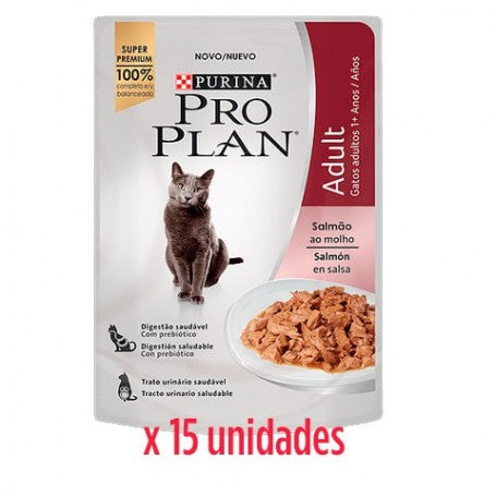 Pack 15 Unidades Pro Plan Pouch Gato Sabor Salmon 85grs