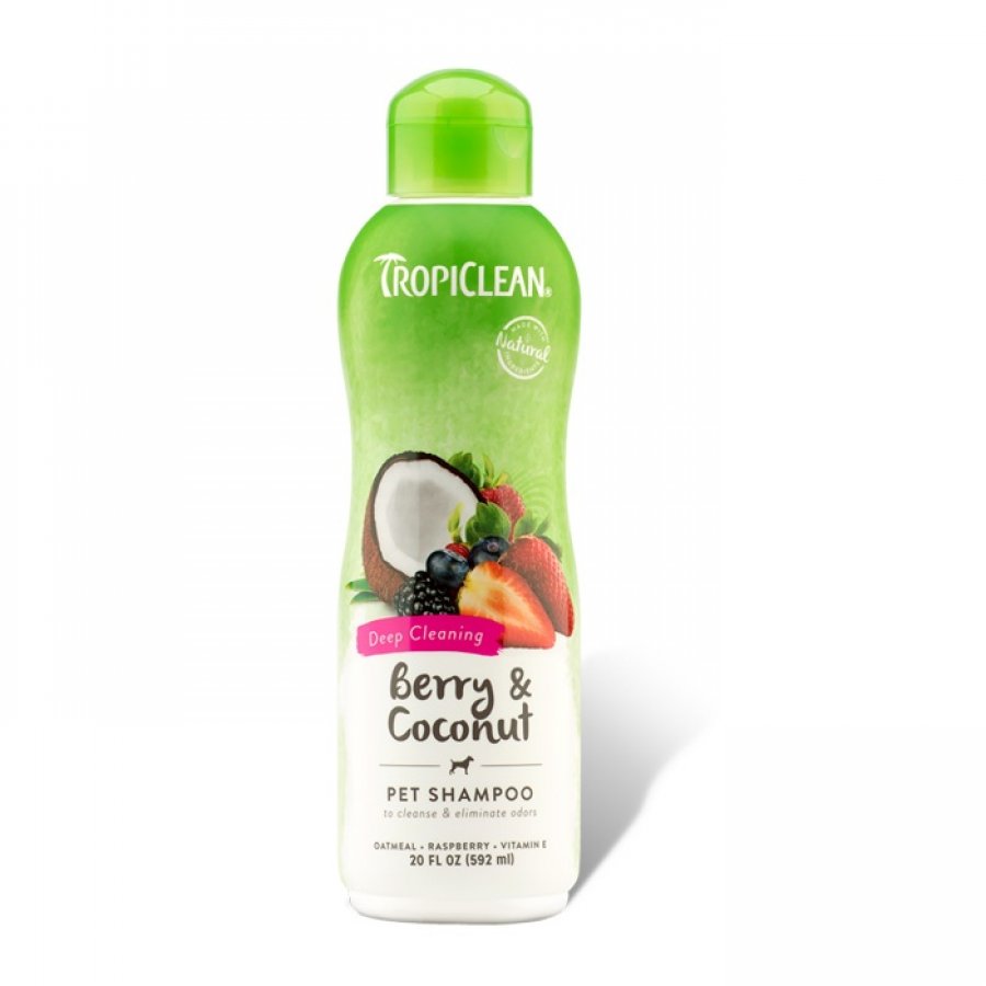 TROPICLEAN® Shampoo Berry & Coconut para perros y gatos limpia tu mascota, incluso después de las aventuras más complicadas. Proporciona una limpieza profunda y lujosa, también repone la humedad natural para un pelaje que es suave y fácil de llevar. Las proteínas naturales y el extracto de frambuesa reponen el equilibrio natural de la piel y el pelaje. El baño de rutina deja a tus peludos con una excelente apariencia. Para perros y gatos de todas las edades (también es seguro para los humanos. TROPICLEAN® Ha desarrollado productos líderes en la industria, desde lujosos shampoos para mascotas, hasta productos para el cuidado bucal fáciles de usar, que brindan a las mascotas y las personas una mejor vida. Utilizan productos de origen natural, saludables, siempre exhibiendo los ingredientes, su propósito y origen para demostrar la seguridad con la que pueden ser usados. Además, tiene como misión de vida no solo brindar soluciones a las mascotas y sus personas, sino también, dar de vuelta algo a la comunidad. Es por esto que gracias a sus ingresos, destina directamente parte de ellas al apoyo de personas con necesidades básicas insatisfechas en países como Guatemala y Haití, entre otros, a través de Gifts of Love International, construyendo incluso un hogar para niños brindándoles alimentación y techo a muchos. Además, también ha apoyado al bienestar y la mejora de la calidad de vida de las mascotas a través de programas como Landon's Helping Paws. Las ventajas de este producto son: Amigable con la tierra: Botella hecha 50% de material reciclado. Para todos Puede ser usado tanto en perros como en gatos. 70% orgánico: Ingredientes de calidad para una limpieza natural. Shampoo sin jabón: Por lo que no afectará a los productos de pulgas spot-on