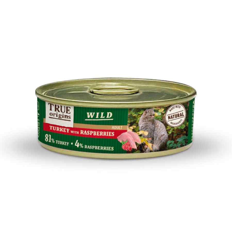 True Origins Wild adulto cat pavo con frambuesas alimento húmedo para gatos 85 GR