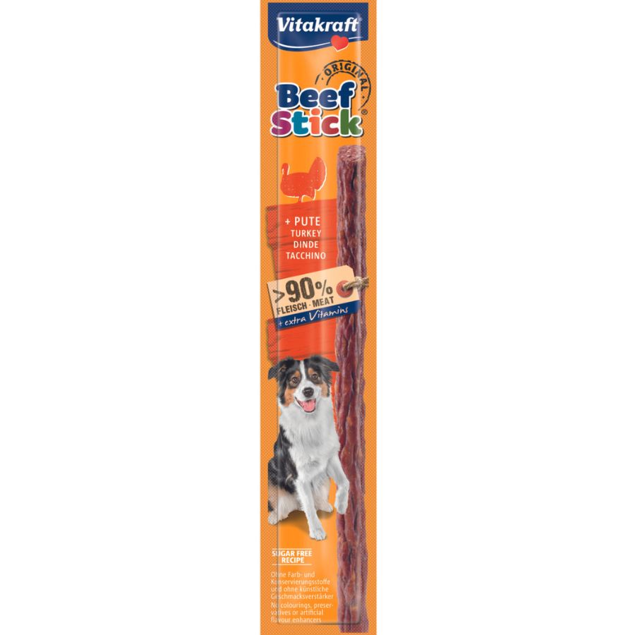 ¡Un Vitakraft Beef Stick® hace que el corazón de cada perro lata más rápido! El original entre los palitos de carne convence por igual a grandes y pequeños amigos de cuatro patas, con un sabor único y abundante , un olor absolutamente delicioso y un contenido de carne extra alto. ¡Perfecto para mimar, recompensar o simplemente para un poco de hambre en el medio! Particularmente práctico: el Beef Stick® Original también es ideal para llevar gracias al paquete desgarrable recién sellado.